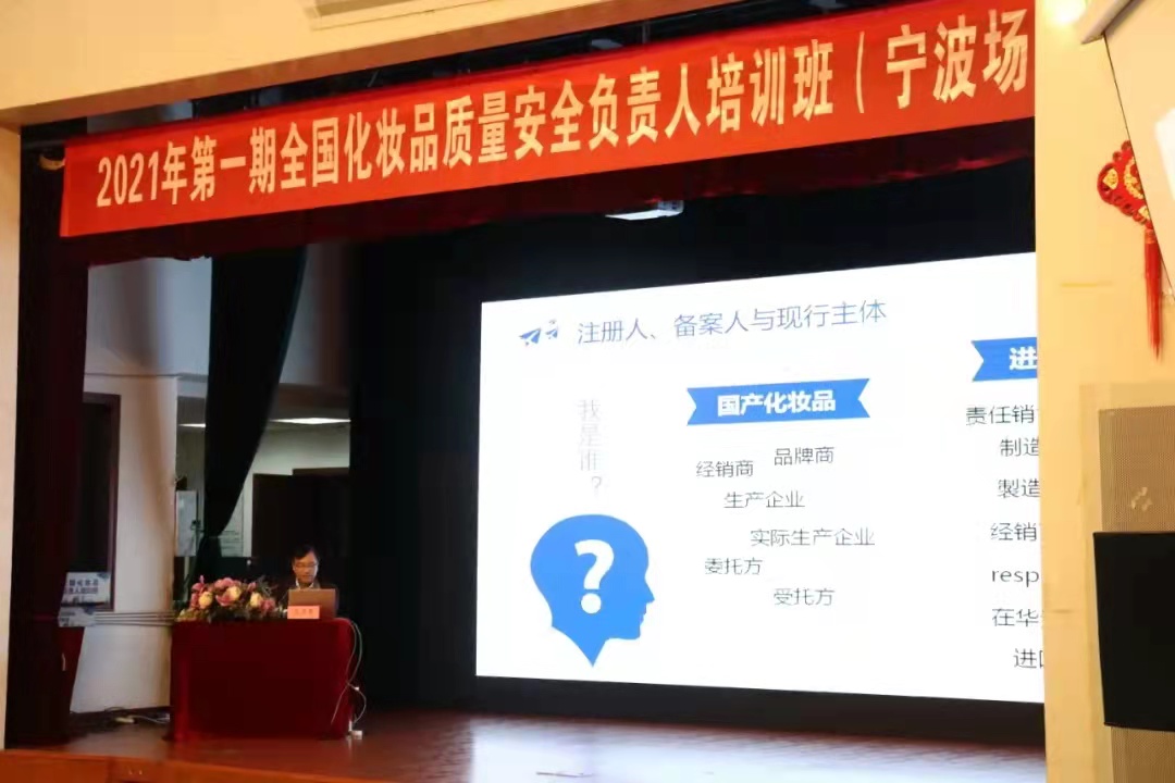 第三天在校员工活动中心报告厅由中国食品药品检定研究院讲解化妆品检验实验室质量管理体系介绍及化妆品注册备案检验工作规范要求。