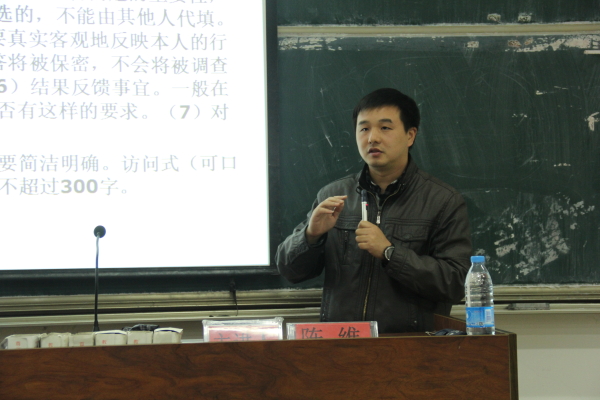 讲座上,陈维老师结合自身多年的科研工作经验和长期从事员工科研指导的经历给同学们详细介绍了老员工科技创新项目申报的要求和技巧,并重点讲解了如何做好问卷调查、如何高质量地完成问卷调查报告。陈维老师指出:在设计问卷调查前,首先要明确调查目标,重点要做好调查方案的设计;其次,在设计问卷时要以被调查者实际情况为设计出发点,问卷内容要适宜;最后,问卷调查的问题排列顺序要科学、严谨、合理,做到循序渐进,问题不能有暗示性,措辞要恰当。整场讲座内容充实,案例清晰,针对性强,陈维老师热情谦逊的治学态度和耐心细致的倾心传授,给在场的同学们留下了深刻的印象,同学们纷纷表示获益匪浅。