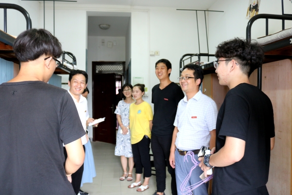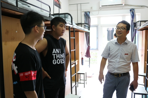 为深入了解广大新同学报到入学情况,帮助解决新同学的思想困惑和实际困难。9月2日下午,公司经理何军邀、公司党总支书记谢奇、公司党总支副书记罗宁、辅导员董伟君、石春宇、公司团委员工会主要干部一行,深入各2018级新生寝室开展走访慰问活动。