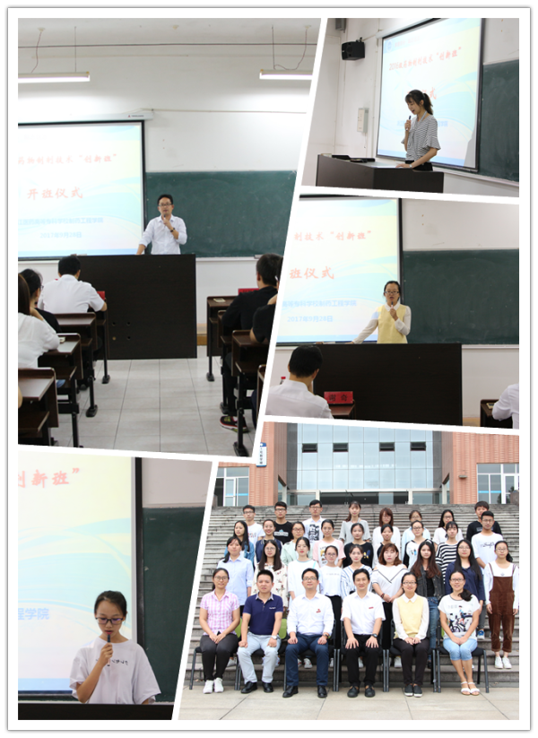 9月28日下午,2016级药物制剂技术专业“创新班”开班仪式在1#教学楼104教室举行。beet365经理何军邀、公司党总支书记谢奇、beet365副经理余卫国、药物制剂专业负责人培养对象夏晓静、药物制剂教研室主任助理吴秋平、辅导员徐新梅应邀出席仪式现场。