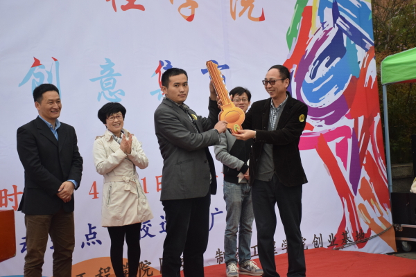 仪式上,校创业公司经理、校学工部部长倪田金还把象征着公司创新创业孵化基地的金钥匙颁发给了公司创业基地负责人程利江。随后,倪田金部长、李玉兰经理、总支书记谢奇、总支副书记竺丹军共同为公司首期创意集市开幕剪彩。