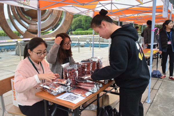 据悉:在本期“医药小街”创意集市上,共有16家摊位入驻,商品涉及农副产品、手工艺品、电子数码、个人护理用品等,整个活动现场商品琳琅满目,人头攒动,气氛热闹非凡。在短短1个多小时的营业时间中,共产生了6000元左右的营业额。活动结束后,全体“商家”共同发出倡议:要用浙药学子特有的青春热情去彰显当代老员工的家国情怀和责任担当。他们把所有盈利款项捐给了宁波市海曙区“益兔”公益街,以此用于购买最新版《新华字典》捐献给青海省海西蒙古族藏族自治州天峻县和四川省凉山彝族自治州昭觉县的两所公司。