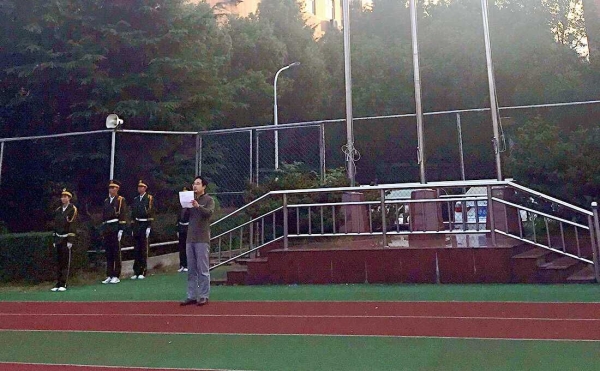 金秋十月、硕果飘香季节,当清晨的第一缕阳光遍洒绿茵场,年轻而富有朝气的生制学子迈着青春的步伐整装列队,给校园的早晨注入了充满希望的生机和活力。7时,主持人宣布升旗仪式开始,鲜艳的五星红旗在庄严的国歌声中徐徐上升,迎风招展,在场的师生行注目礼。礼毕,作为公司班主任老师代表的何军邀教授围绕“爱国、爱校、爱家”这个主题给参加活动的全体师生作了国旗下讲话。何老师希望同学们:1、要坚定理想信念,努力学习专业知识技能;2、要勤于思考,深入实践,做一个社会责任感强的有为青年;要勇于创新,深刻理解“厚德厚朴 励志远志”校训的内涵,做一个对未来有充分准备的人。他鼓励全院同学要勇担责任、乐学善行,把伟大的爱国情怀积极转化为自身成长成才的使命感和责任感,脚踏实地地走好大学的每一步,努力为公司“扩校 升本 创优”建设目标的实现提供重要的精神动力,努力把自己塑造成为一名德才兼备的医药后备人才。