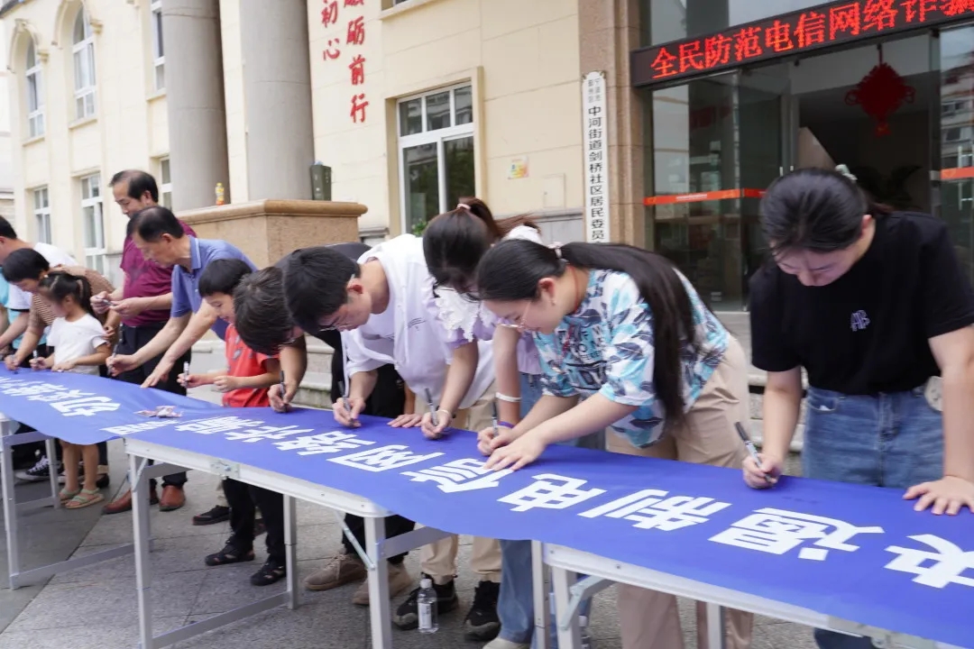 为了防范电信网络诈骗,保障自身财产安全践行当代老员工志愿者精神,公司于2021年6月10日在剑桥社区开展剑桥社区“反诈”员工志愿者入户宣传活动,参与本次活动的人员为beet365第十四期入党积极分子。