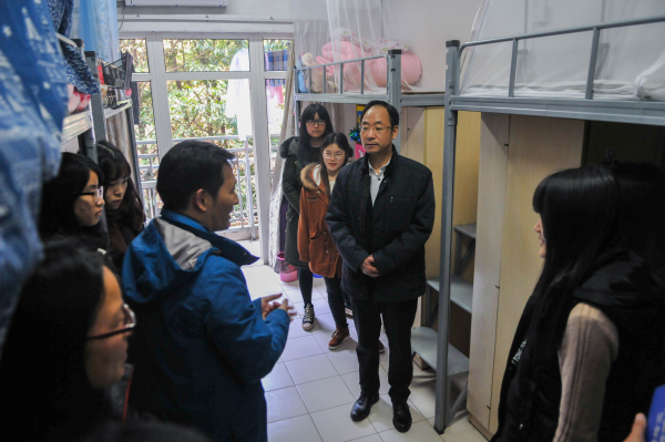 “这个寒假过得怎么样,有什么见闻和收获吗?”“返校路途顺利吗?”“到校后学习和生活有什么困难?”“新学期有什么打算和安排?”,陈书记一进寝室就亲切地询问起寝室同学的日常学习和生活情况,与大家面对面地聊起了家常、聊起了老员工活和人生发展。对于已经进入大二下学期同学们最关注的 “升学、就业”等问题,陈书记深切的指引大家:一方面要把握宝贵的学习时间,脚踏实地,扎实掌握专业技能,刻苦锤炼真本领;另一方面也要内外兼修,培养广泛的兴趣爱好,练就更高强的能力素质和更坚毅的意志品格,勇于承担时代赋予青年员工的责任。在得知有不少同学有专升本打算后,陈书记勉励同学们一旦树立好目标要敢于追求,通过自身努力来实现提升学历层次的梦想。当讲到合理安排老员工活发展兴趣爱好时,陈书记鼓励大家要多学习中华民族传统文化,并饶有兴致的跟同学聊起了字体和著名书法家,勉励同学通过练习书法陶冶情操,培养专心、细心、耐心的品质。同时鼓励各班委要继续积极调动好同学积极性,互帮互助,形成良好的班风和寝室文化。