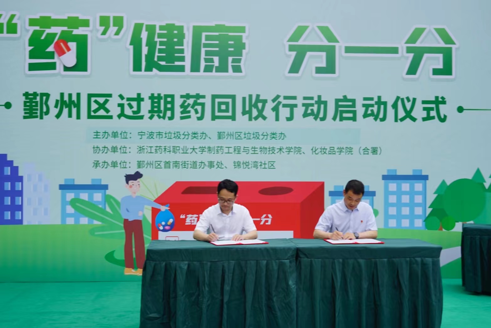 启动仪式中,公司与鄞州区分类办签署了合作共建备忘录,双方约定将通过主题活动宣传、用药安全巡讲、线上推广等活动,共同推进源头精细分类,建立和完善过期药品回收机制,并授旗成立了其中包括公司志愿服务队等5支志愿服务队。“药品过期后危害大,应分类投放至有害垃圾桶或过期药回收箱。”公司志愿服务队的李朱琪同学向到场的市民倡议。
