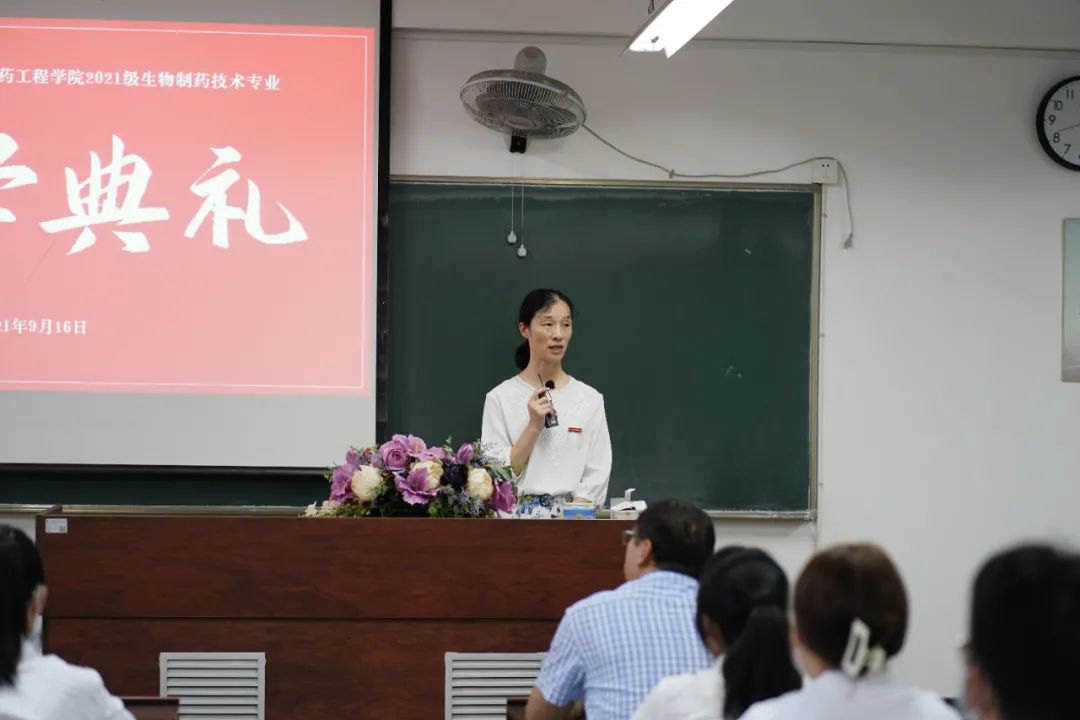首先由公司党总支书记卢培苗老师致辞,对新生们的到来表示热烈的欢迎,并代表公司对新生们提出三点希望。一、希望同学们热爱党,热爱祖国。以屠呦呦、顾方舟两位科学家为榜样,心怀祖国重托,情系人民健康,恪守药德,精研药术,为祖国的医药事业和人类健康奋斗终生。二、希望同学们牢记“厚德厚朴,励志远志”的校训。在大学学习中要坚持学以致用、力求知行合一,积极行动,在人生的道路上百折不挠、一往无前。三、希望同学们深刻领会“厚药德、明药规、强药技”,不断修炼内功。要修炼自身素养,奠定专业技能的基础,遵守药规。最后她对新生送去了真诚的祝福。
