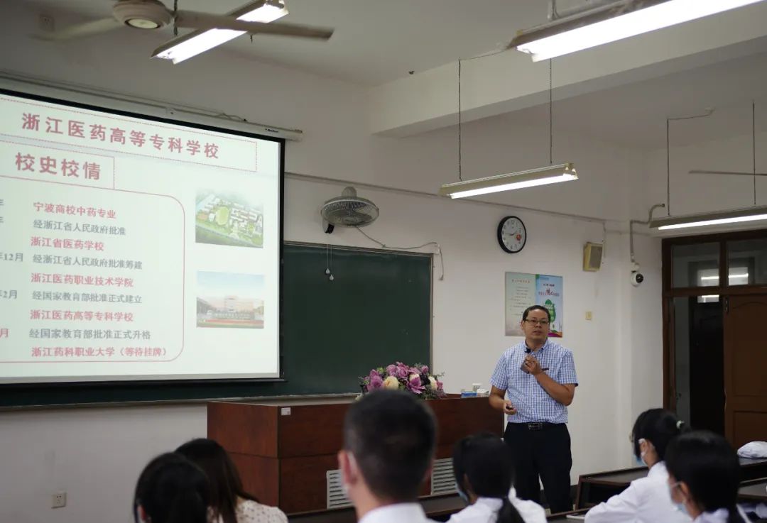 经理简单介绍了公司的历史发展情况,着重强调了药德药规药技的重要性,他向新生阐述了公司未来的目标是建设一所创新创业型的药科职业大学,秉持依托产业服务产业的办学理念,将每一个来到浙药的学子都培育成厚德厚朴,励志远志,坚守四德的药科创新型人才。同时,他对新生的寝室文明生活建设和对自身学习规范性提出了新的要求。