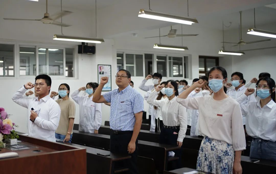 接着由大二员工代表丁建鑫同学发言,他阐述了自己心目中浙药学子的形象,鼓励学弟学妹认真学习,多参加课外活动,丰富自己的校园生活。他希望每一位新生都能秉持公司“匠新制药”的精神:用匠心制药,用创新不断突破自己,立志献身崇高的医药事业,情系人民健康,以仁爱之心,秉济世之志,恪守药德,精研药术。同时要心立四德,牢记校规,做一名合格的浙药人。发言结束后,丁建鑫作为代表领读了医药人宣誓。